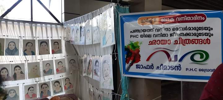 മാർച്ച് 8 ലോകാവനിതാദിനത്തിന്റെ ഭാഗമായി എക്സിബിഷൻ ഹാളിൽ പഞ്ചായത്തിലെ മുഴുവൻ വനിതാ മെമ്പർമാരുടെയും കാവനൂർ പ്രാഥമിക ആരോഗ്യ കേന്ദ്രത്തിലെ വനിതാ ജീവനക്കാരുടെയും ചായ ചിത്രങ്ങൾ പി.എച്ച്.സി ഡ്രൈവർ ജാഫർ ചീമാടൻ വരച്ച് പ്രദർശിപ്പിക്കുന്നു.