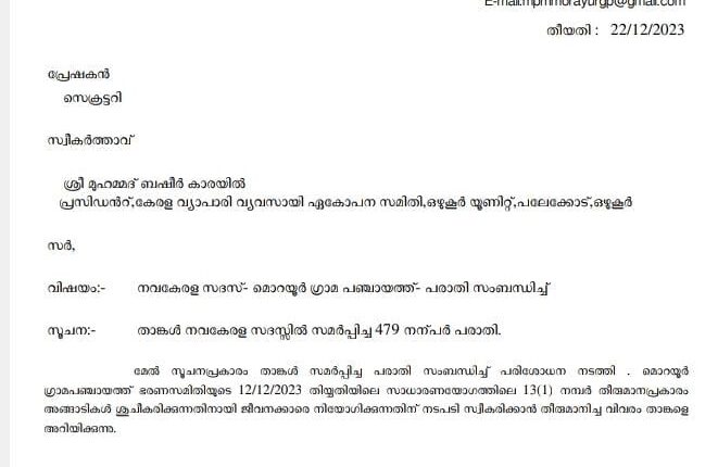 പഞ്ചായത്തിന്റെ വിവിധ ഭാഗങ്ങളിൽ തൊഴിലാളികളെ നിയമിക്കാൻ തീരുമാനിച്ചതായും ഇതിനായുള്ള ഇന്റർവ്യൂ ഉൾപെടെയുള്ള നടപടികൾ വരും ദിവസങ്ങളിൽ നടക്കുമെന്നും പഞ്ചായത്ത് അധികൃതർ രേഖാമൂലം അറിയിച്ചു. യൂണിറ്റ് പ്രസിഡന്റ് ബഷീർ കാരയിൽ, ട്രഷറർ ഞാറക്കാടൻ കുഞ്ഞിട്ടി എന്നിവർ നേതൃത്വം നൽകി.